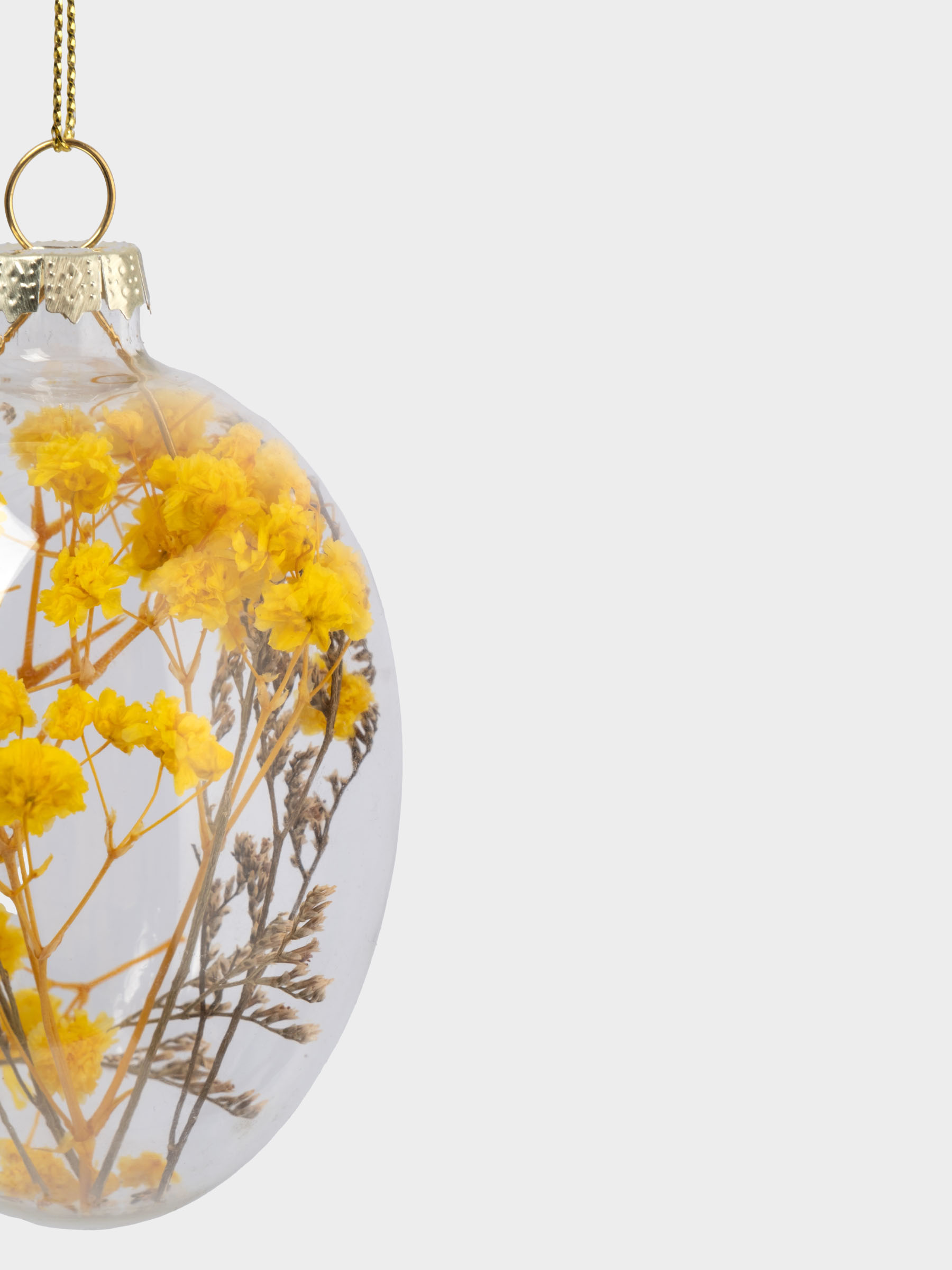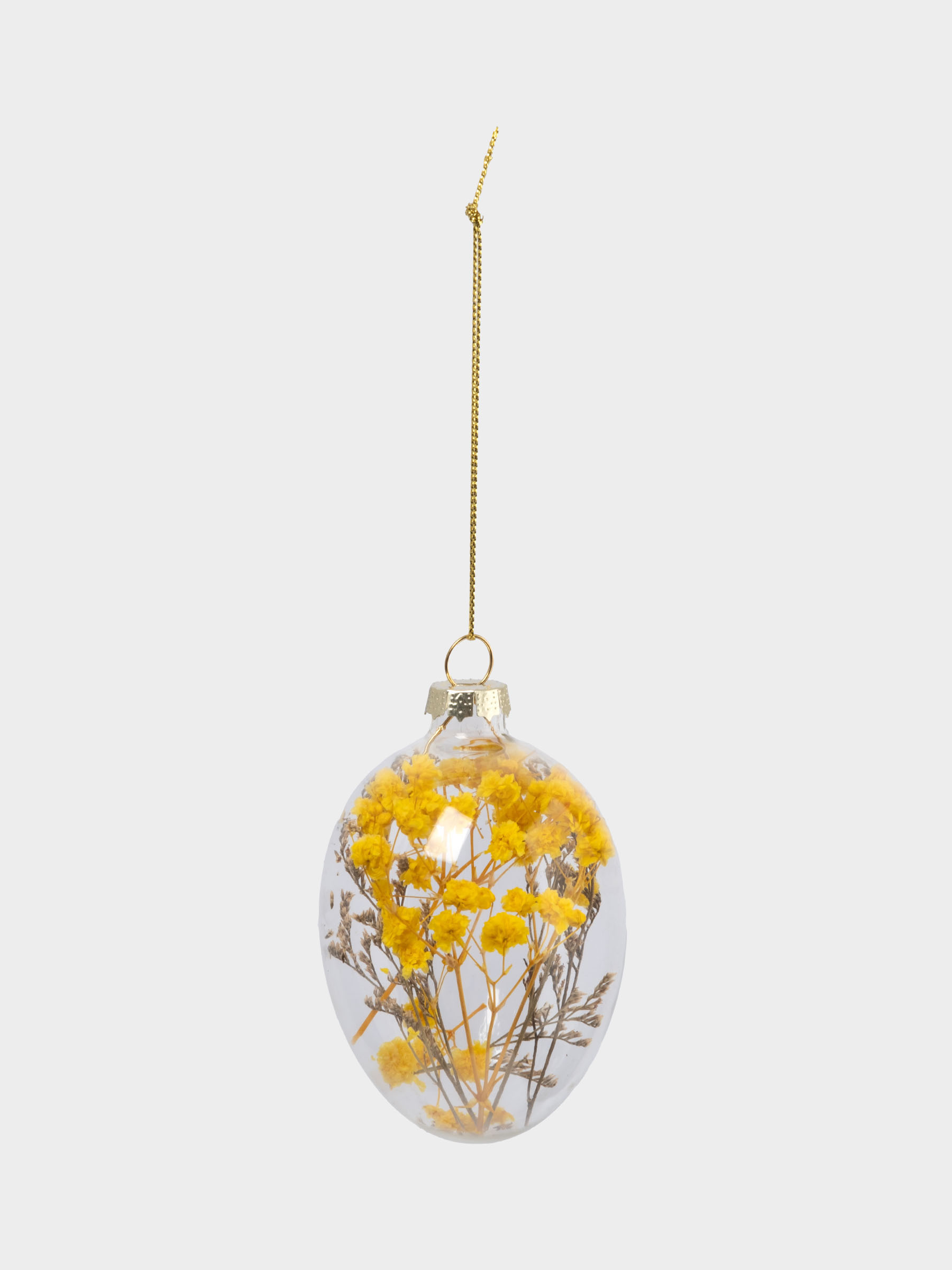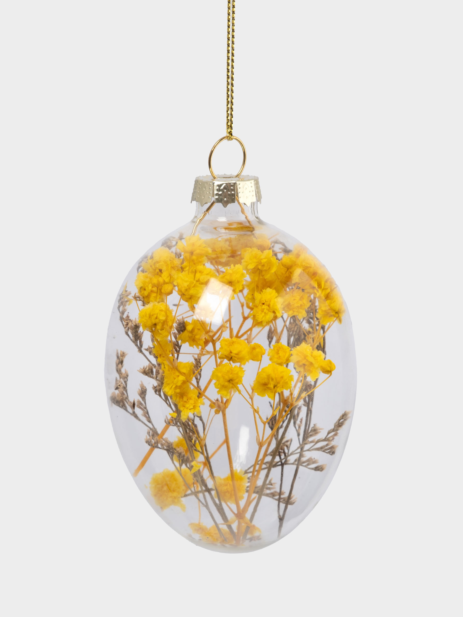 Подвеска декоративная, 4х6 см, с сухоцветами, стекло, желтая, Яйцо пасхальное, Interior Easter