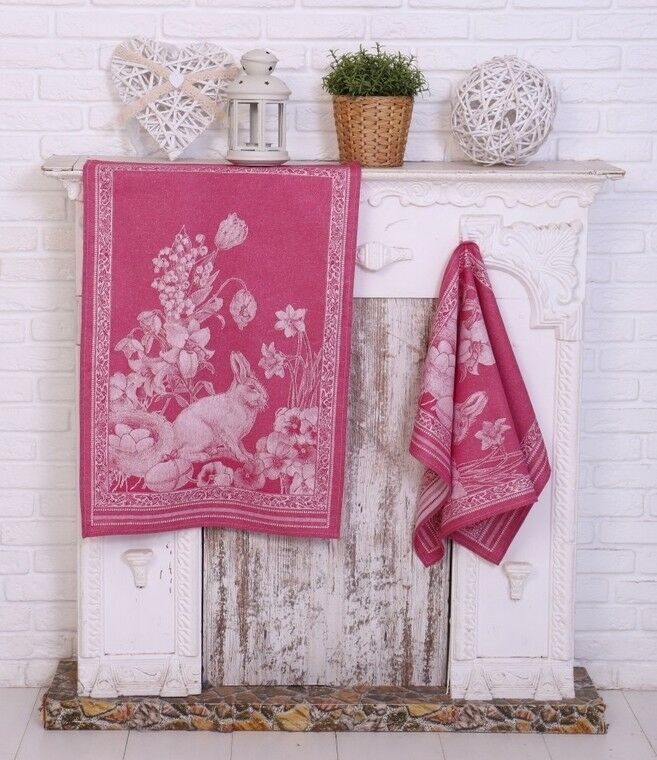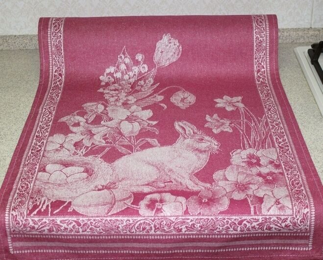 Полотенце жаккардовое Премиум "Пасхальный кролик"-малиновый 50*70 см.