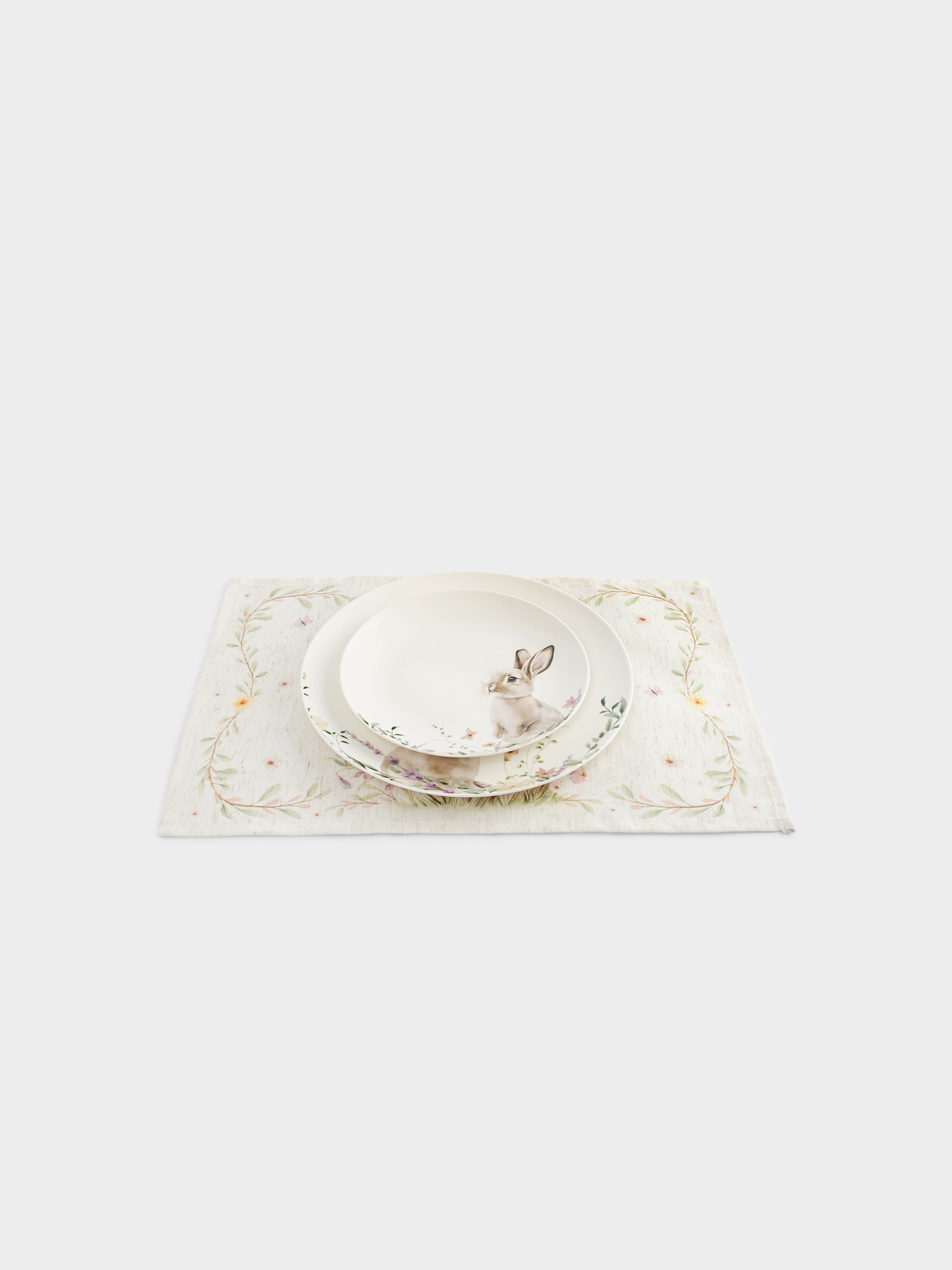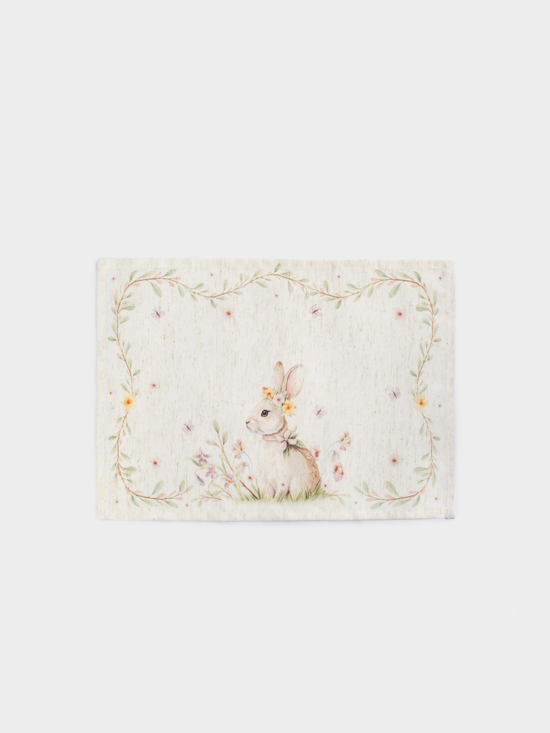 Салфетка под приборы, 30х45 см, полиэстер/лен, бежевая, Кролик в цветах, Easter rabbit