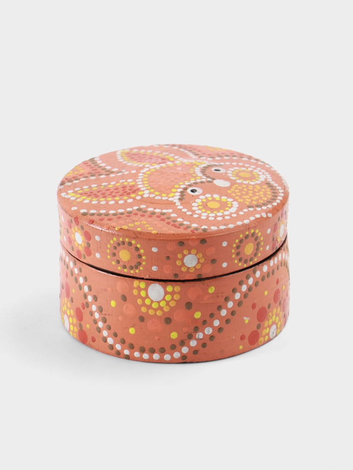 Деревянная шкатулка «Кролик» — круглая коробочка из дерева албезии с ярким оранжевым покрытием и дружелюбным зверьком на крышке. Её форма и образ отсылают к весеннему настроению и светлому празднику Пасхи, но при этом она остаётся универсальной: подходит для хранения мелочей, украшений или сладостей. Лёгкая, тёплая на ощупь, с характером — как будто сама просится в руки.