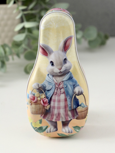 Кролик на крышке — не просто рисунок, а напоминание о простых радостях: первых лучах солнца, пасхальных зорях, детском смехе. ”Клади сюда — и пусть каждый взгляд дарит улыбку“.