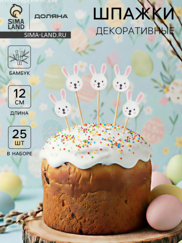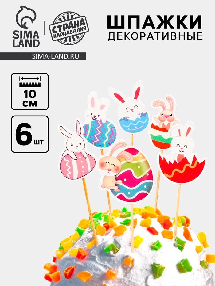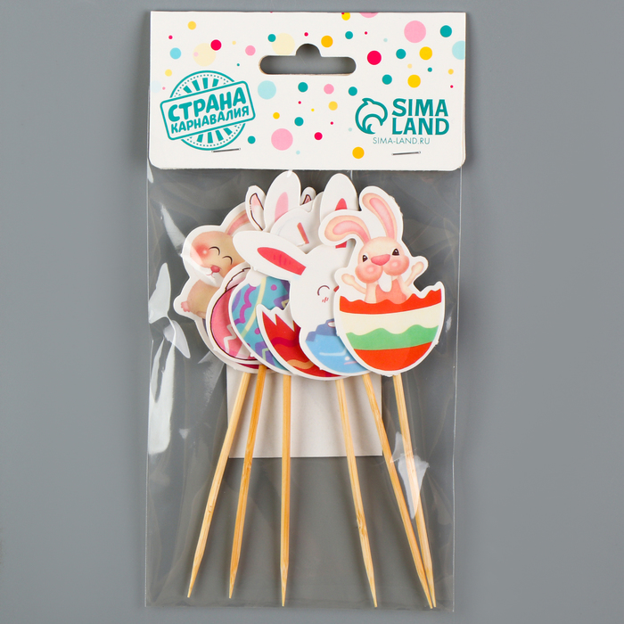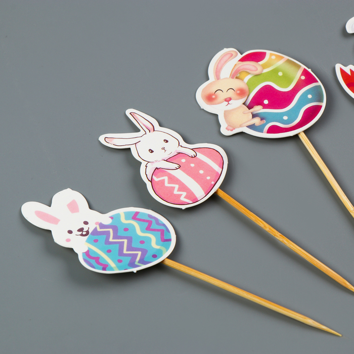 Шпажки на пасху «Пасхальные кролики», набор 6 шт.