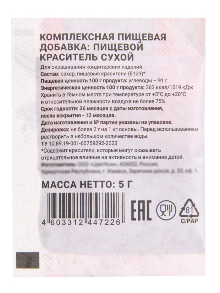 * Экономичный расход: Пакетика весом 5 г хватает на большое количество яиц. Вы сами регулируете интенсивность: добавите больше порошка – получите тёмно-красный, почти бордовый оттенок, меньше – нежно-розовый.