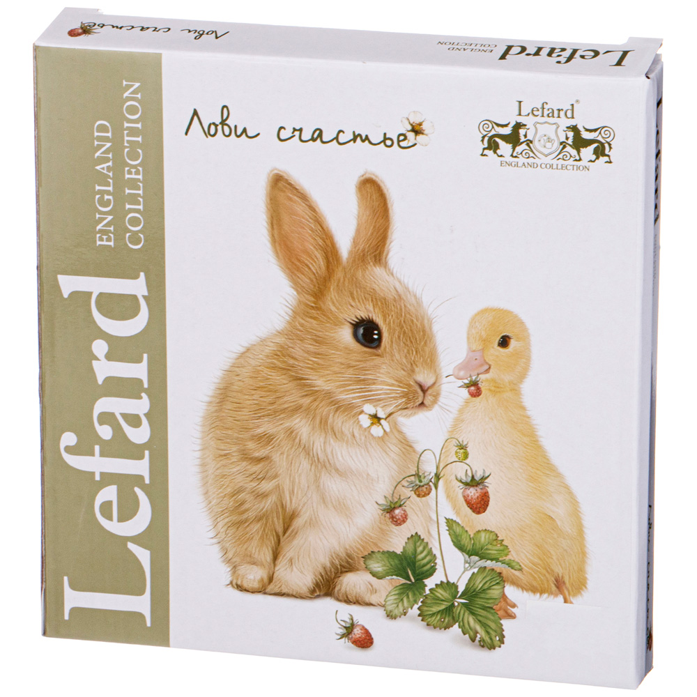 Наша жизнь состоит из маленьких мгновений счастья. Поймал это мгновение и наслаждайся! Только любовь и только доброта сделает мечты реальными. Пушистые крольчата и задорные утята заставят улыбнуться и согреть любовью родных и близких. ТМ LEFARD коллекция «Лови счастье» - это лучший подарок самым дорогим и любимым. Кружки, чайные пары, тарелки и салатники выполнены на тонкостенном высококачественном фарфоре. Удобные формы и размеры. Красочная упаковка. Продукция прошла сертификацию, безопасна для контакта с пищевыми продуктами. Можно использовать в микроволновой печи, мыть в посудомоечной машине.