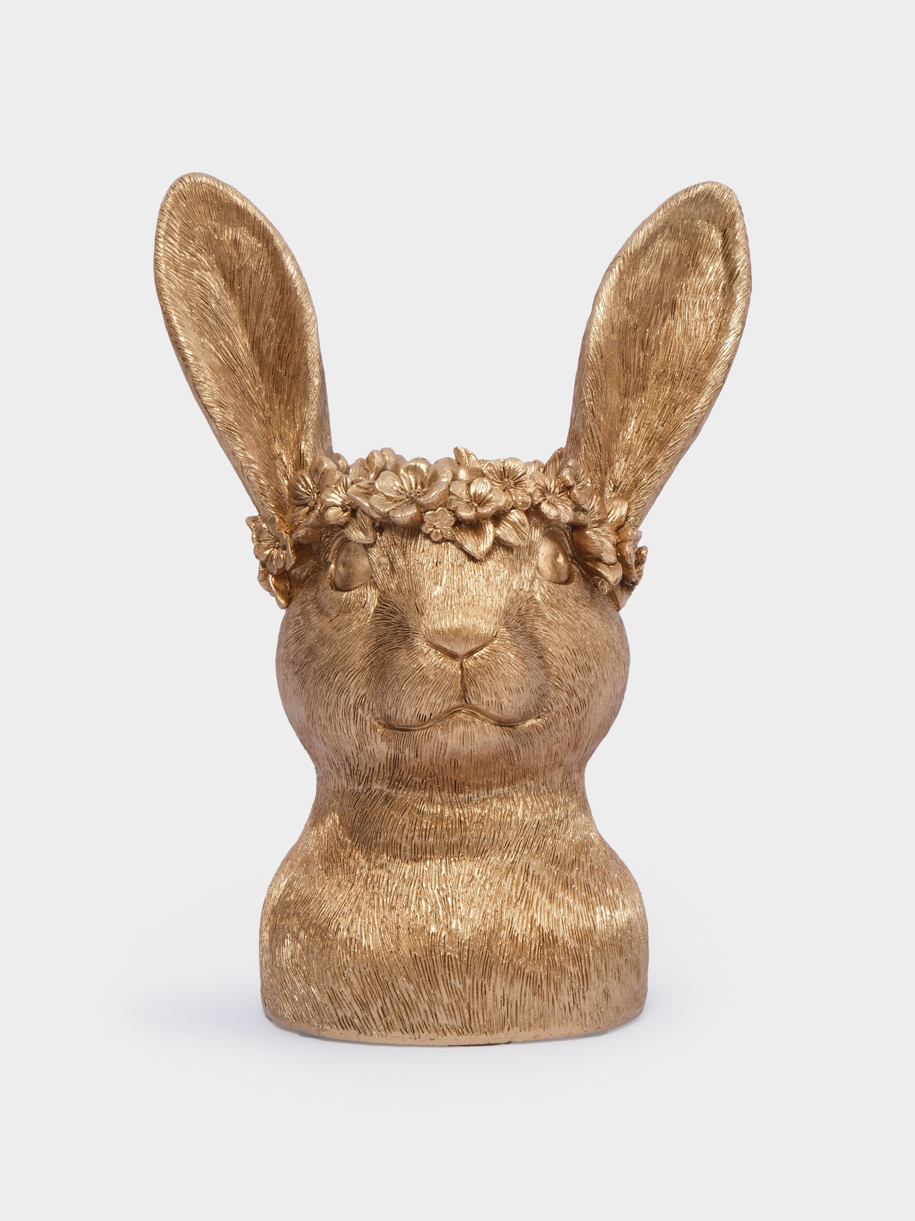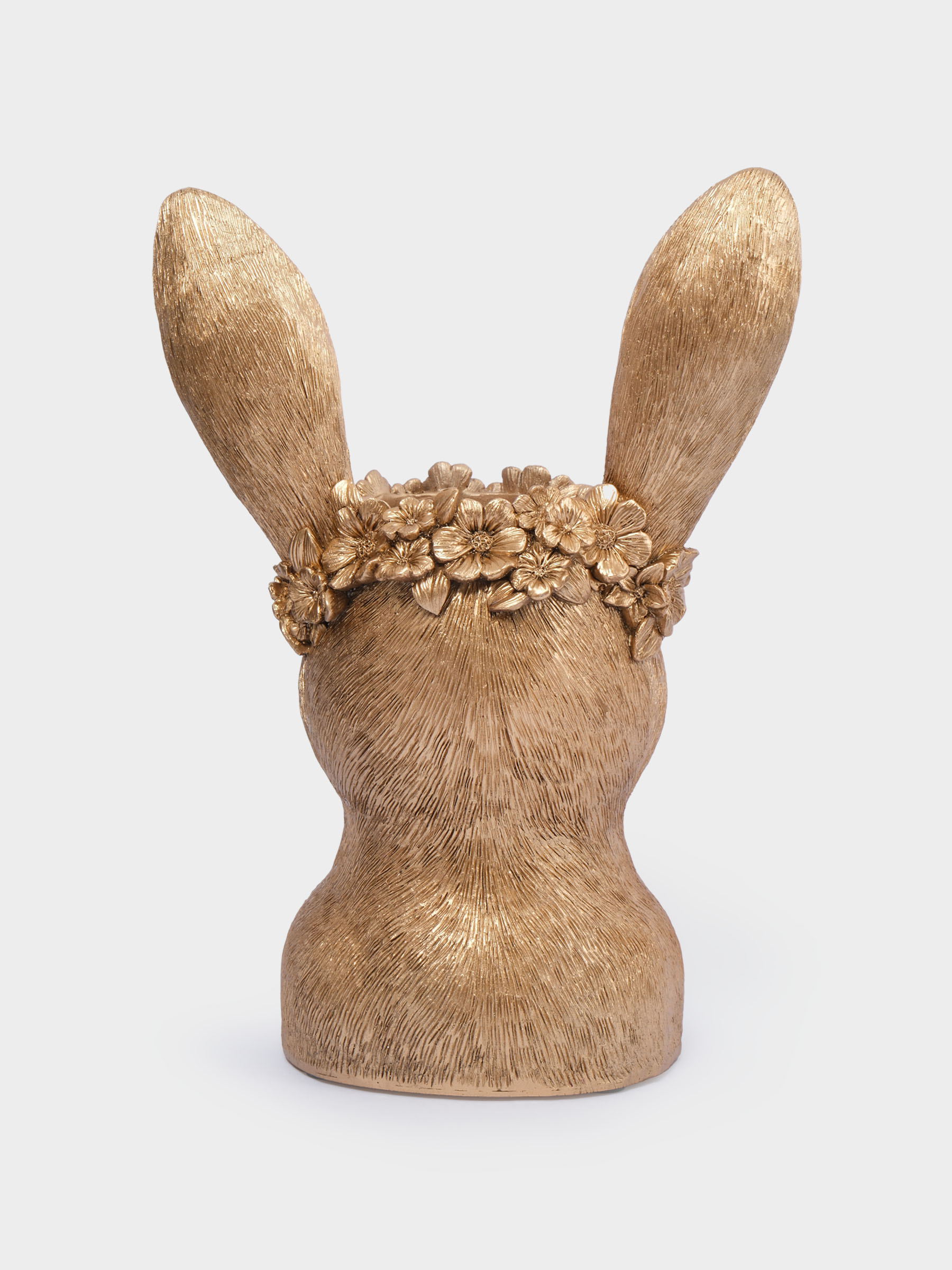 Ваза декоративная, 31 см, полирезин, золотистая, Кролик в венке, Rabbit