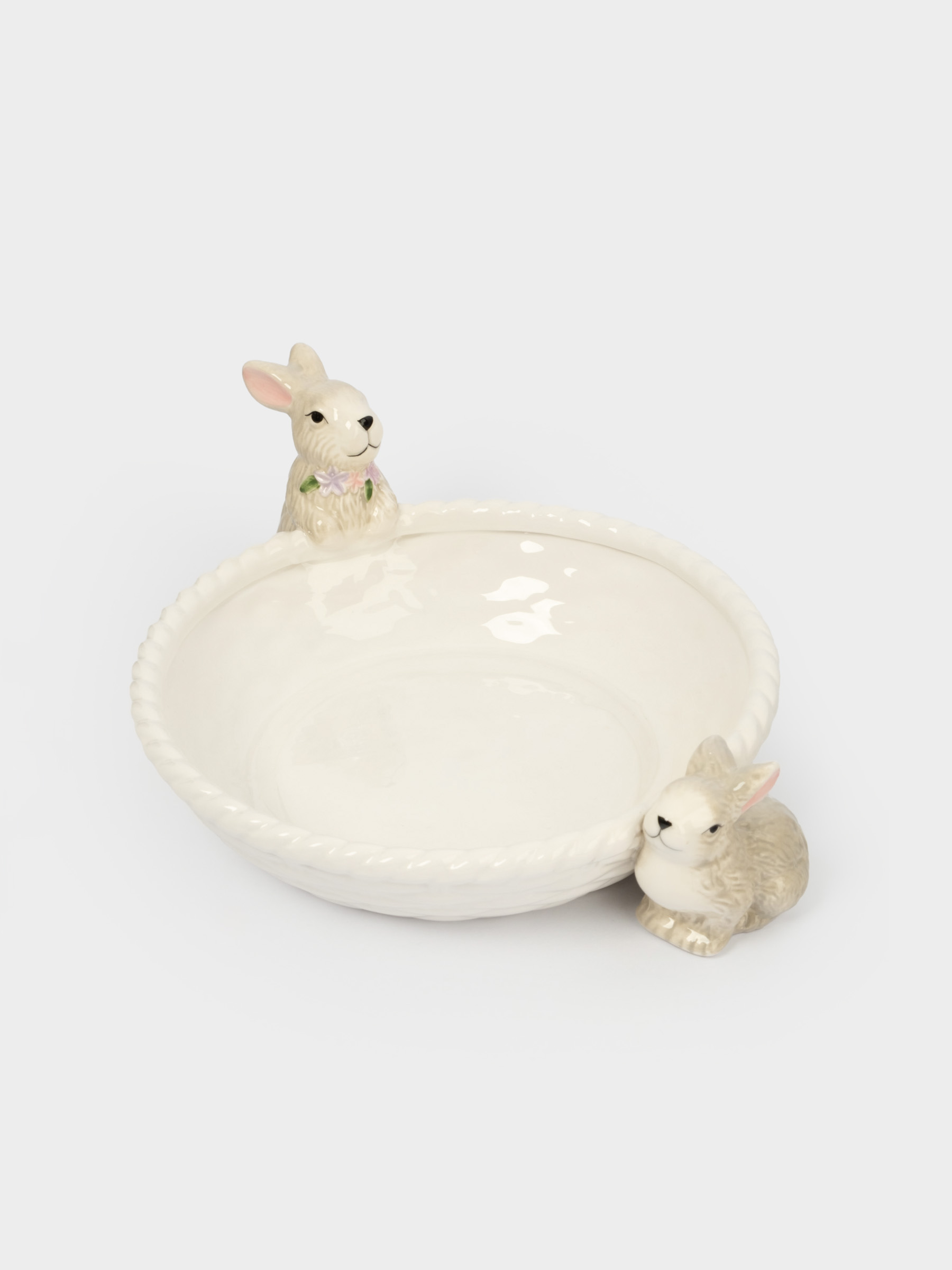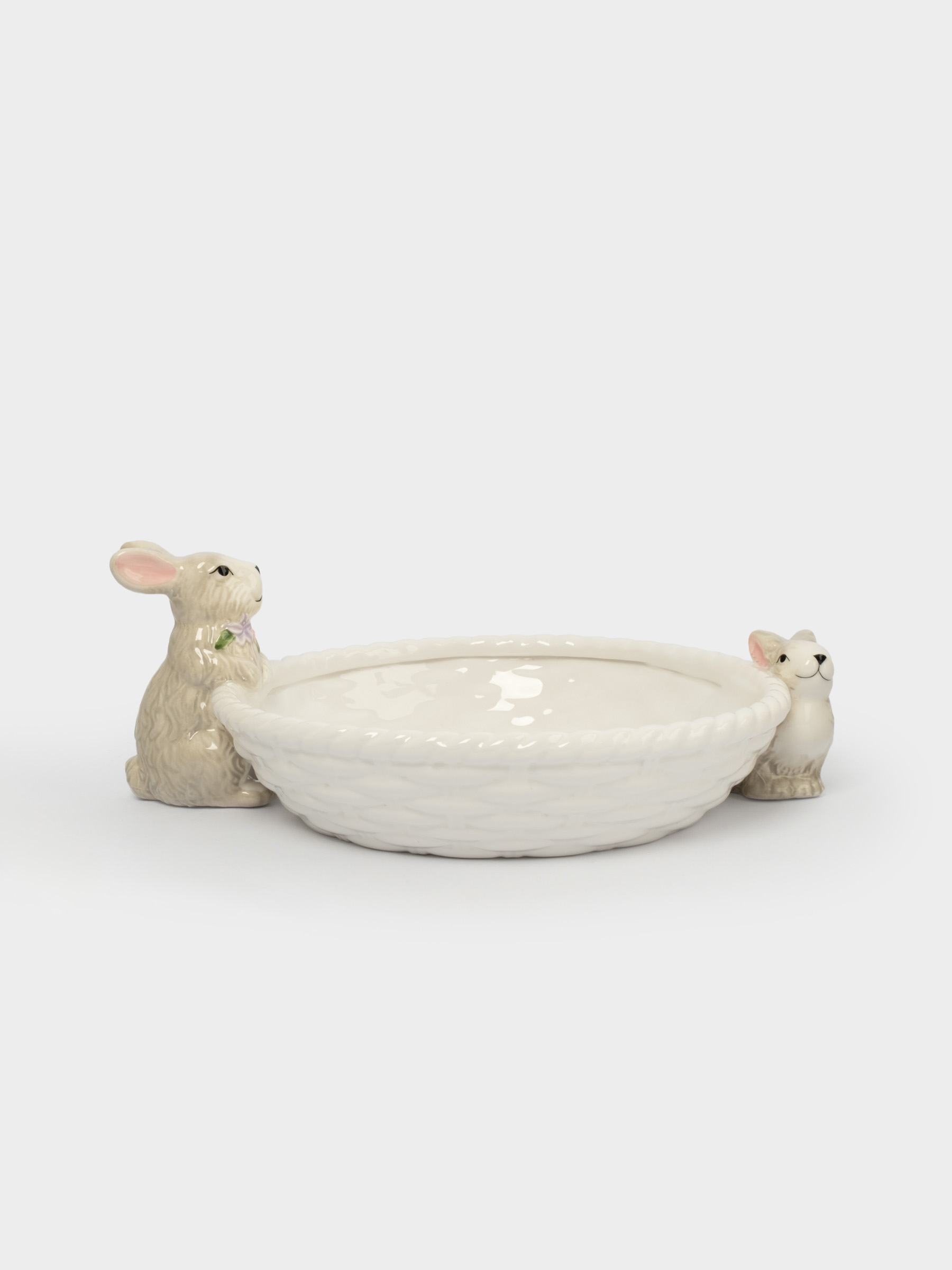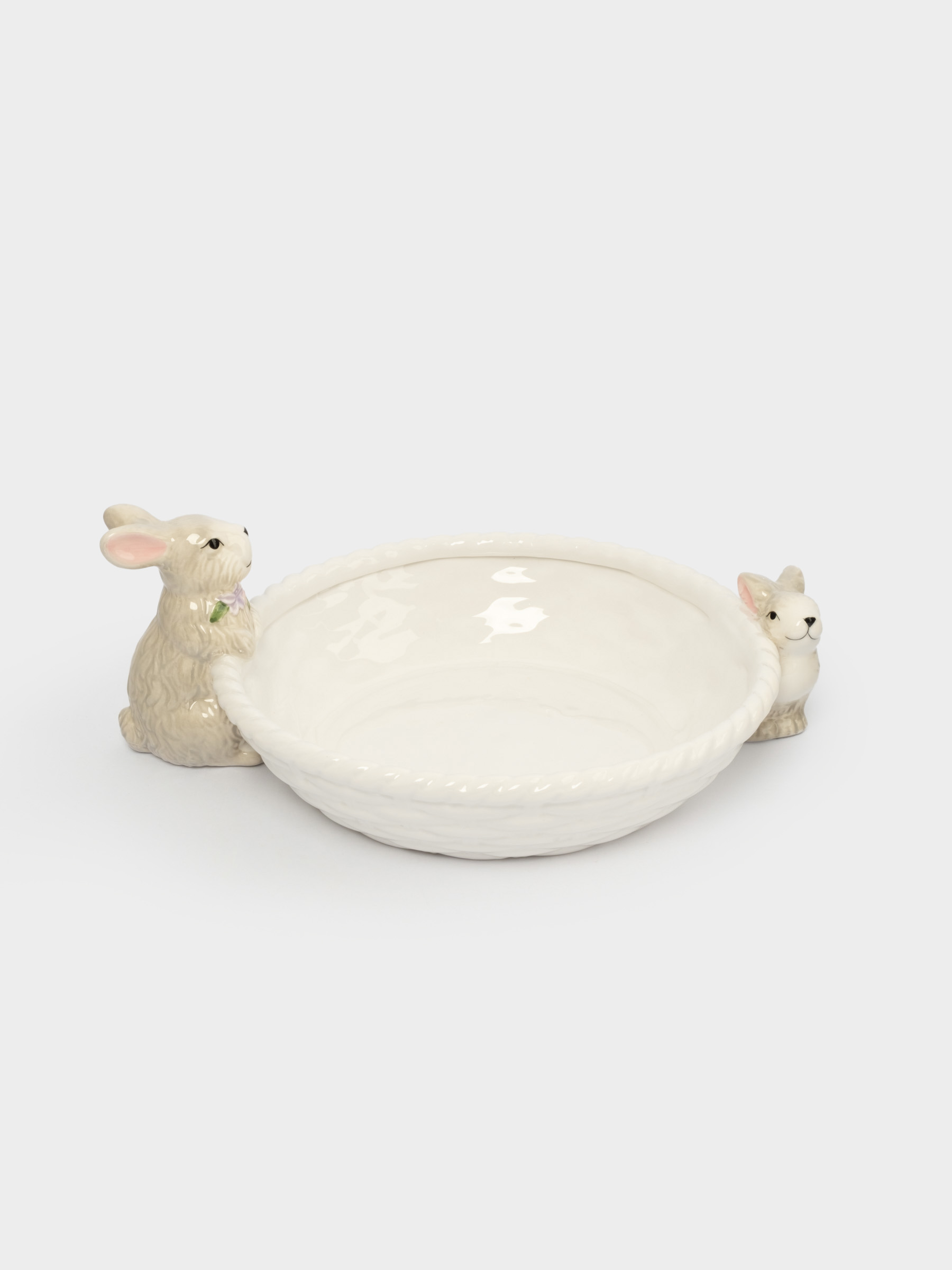 Ваза для фруктов, 26х6 см, керамика, молочно-серая, Кролики с корзинкой, Brown Rabbit