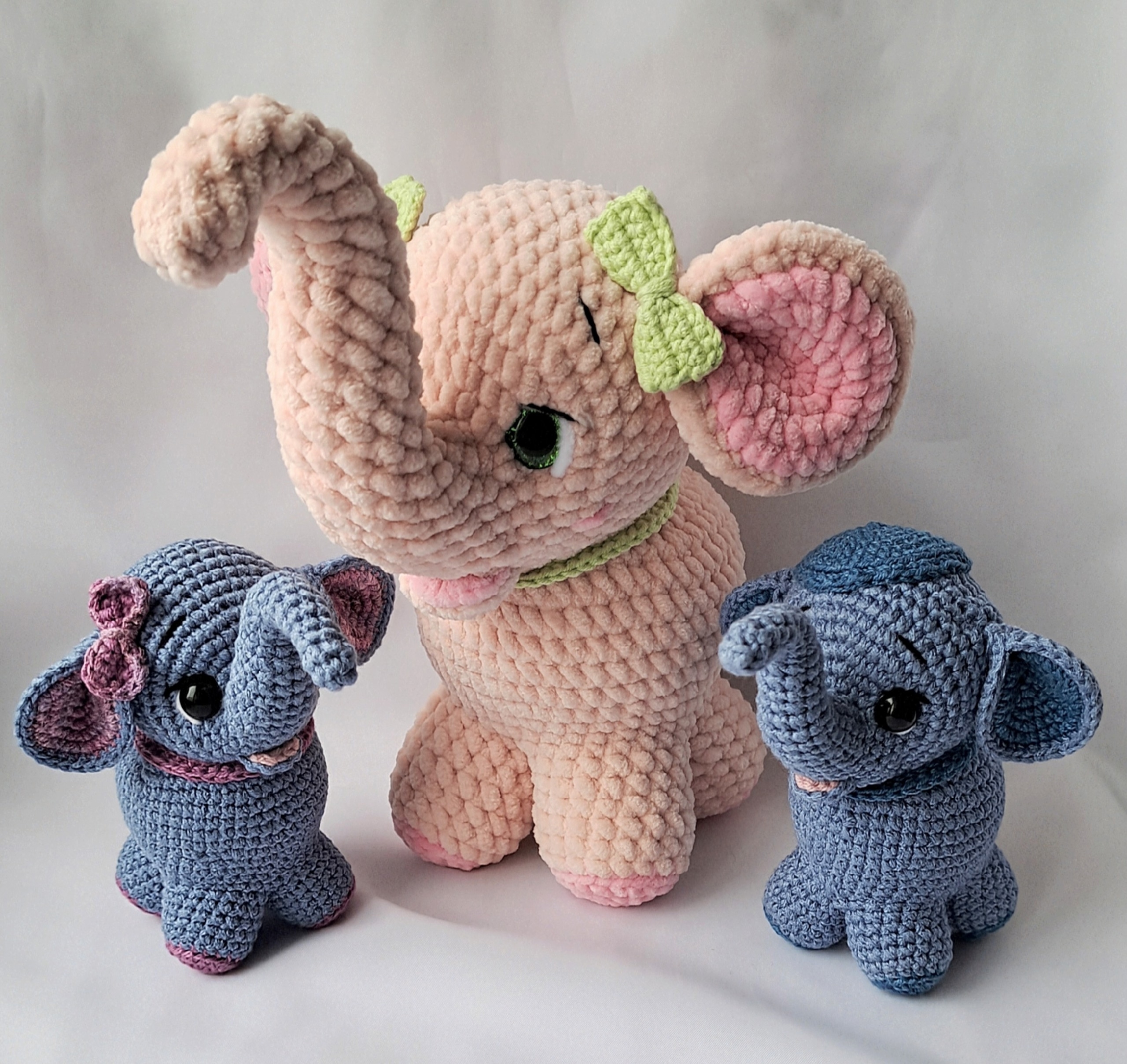 Слоники, мальчик и девочка связаны из полухлопковой гипоаллергенной пряжи.