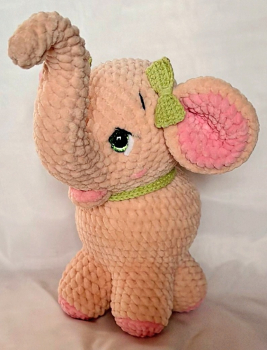 Высота около 11-12см., без учёта хобота. Глазки на безопасном креплении.