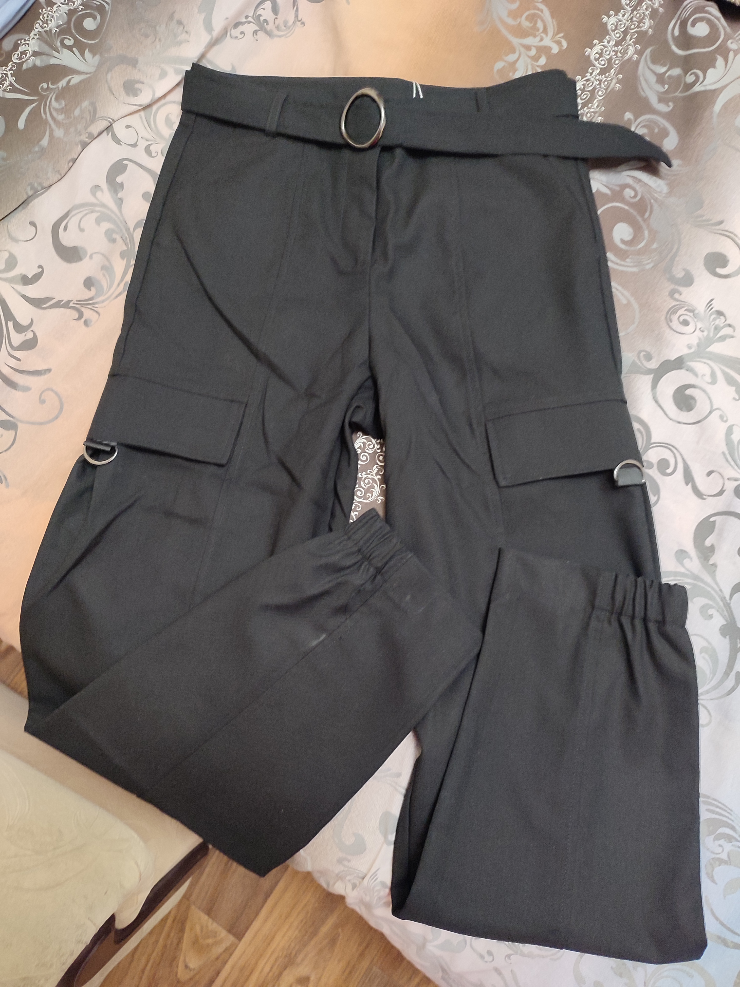 Брюки-бананы для девочки с высокой посадкой. Пояс регулируется потайной резинкой. Застежка а замок и пуговицу. Функциональные карманы. Пошив безупречный. По низу собраны на резинку.
