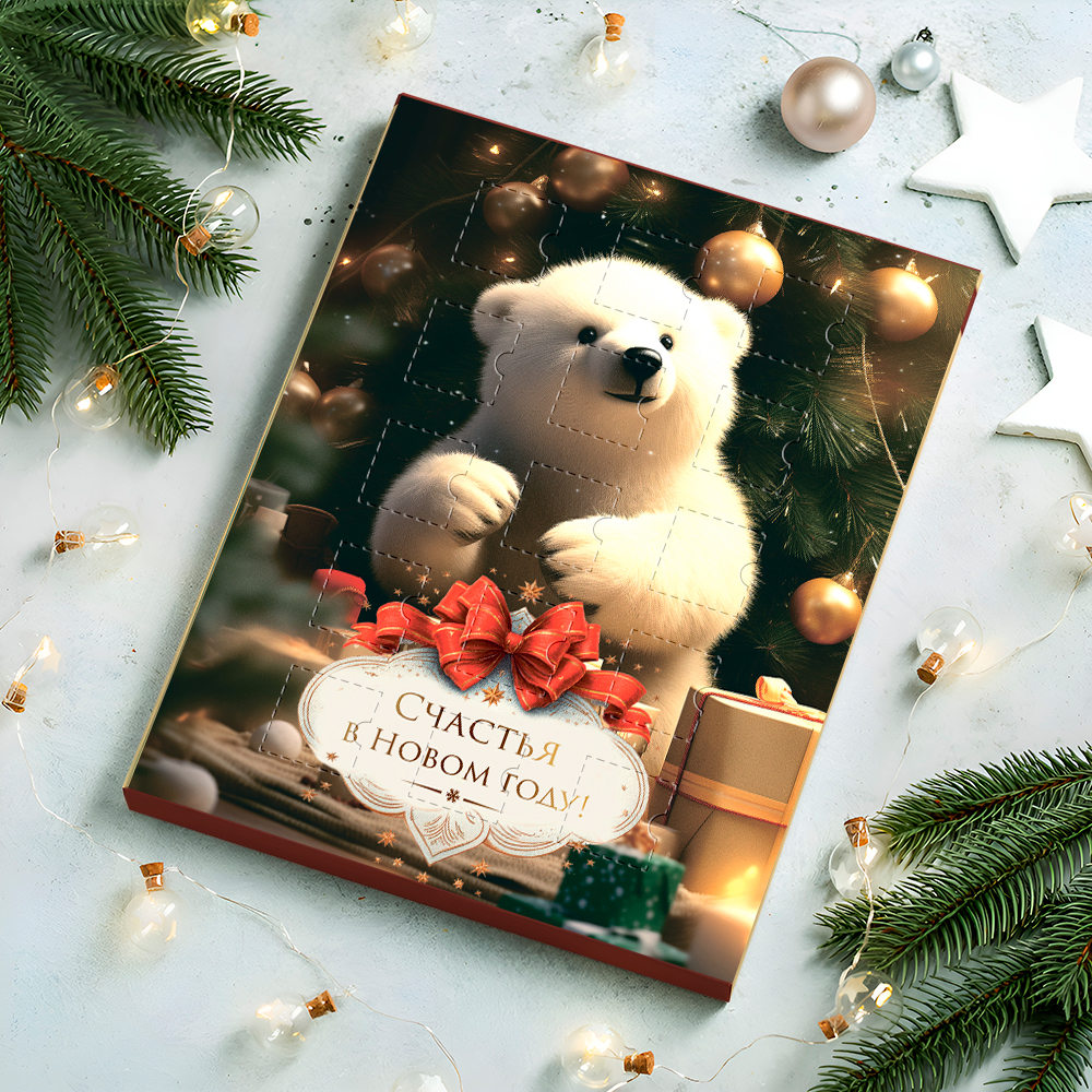 Адвент-календарь с шоколадом "Счастья в Новом году! (мишка)", 15 шт. по 5 г.
