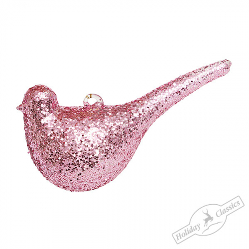 Птичка розовая искристая (стекло) 11х4х6 см