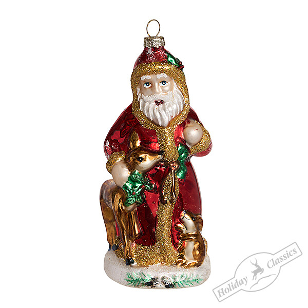 Дед Мороз с лесными зверушками (стекло) 7х7х15 см