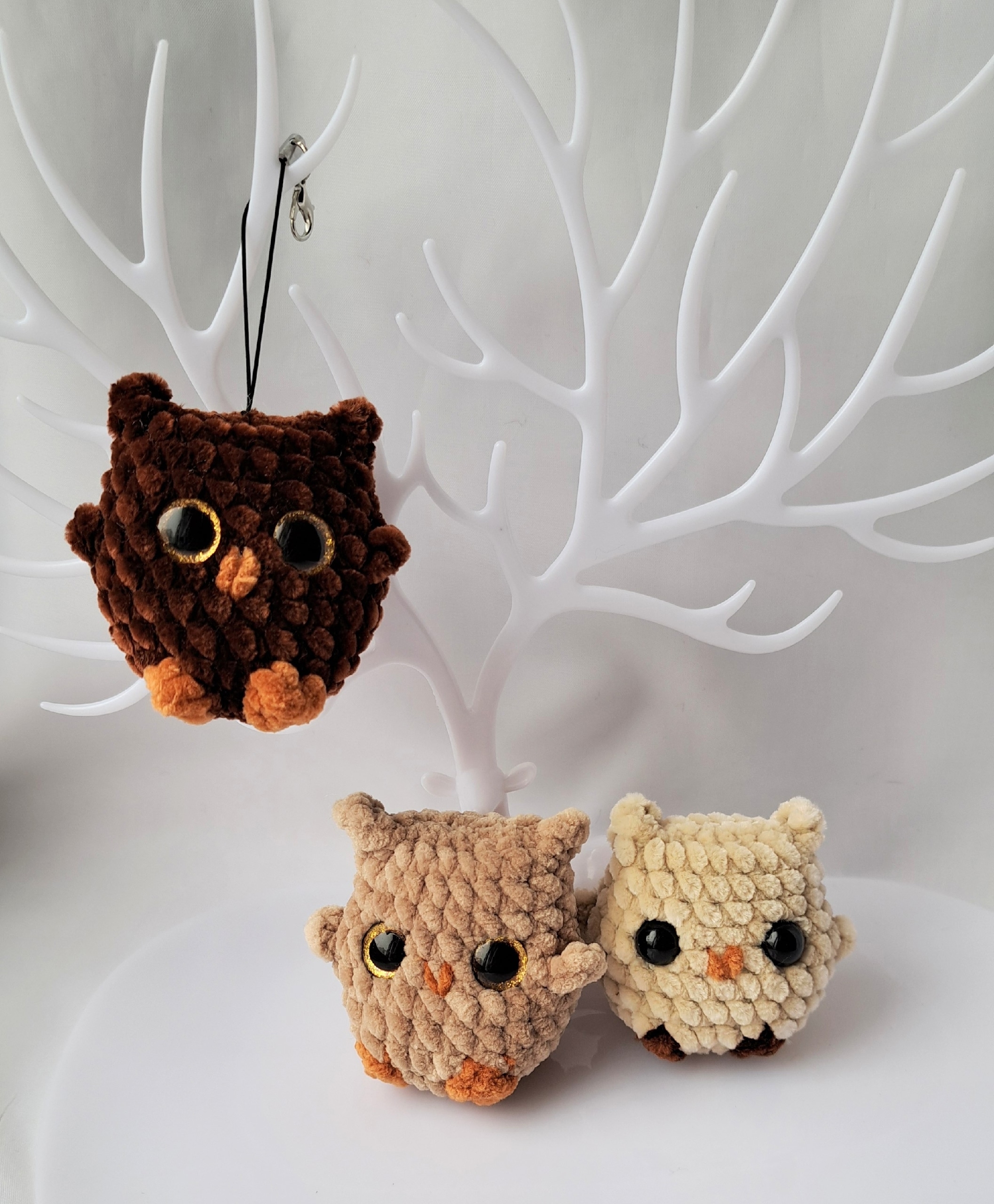 Совушки связаны из плюшевой гипоаллергенной пряжи.