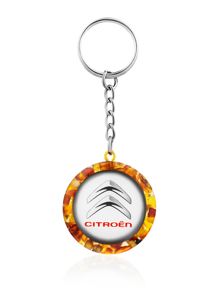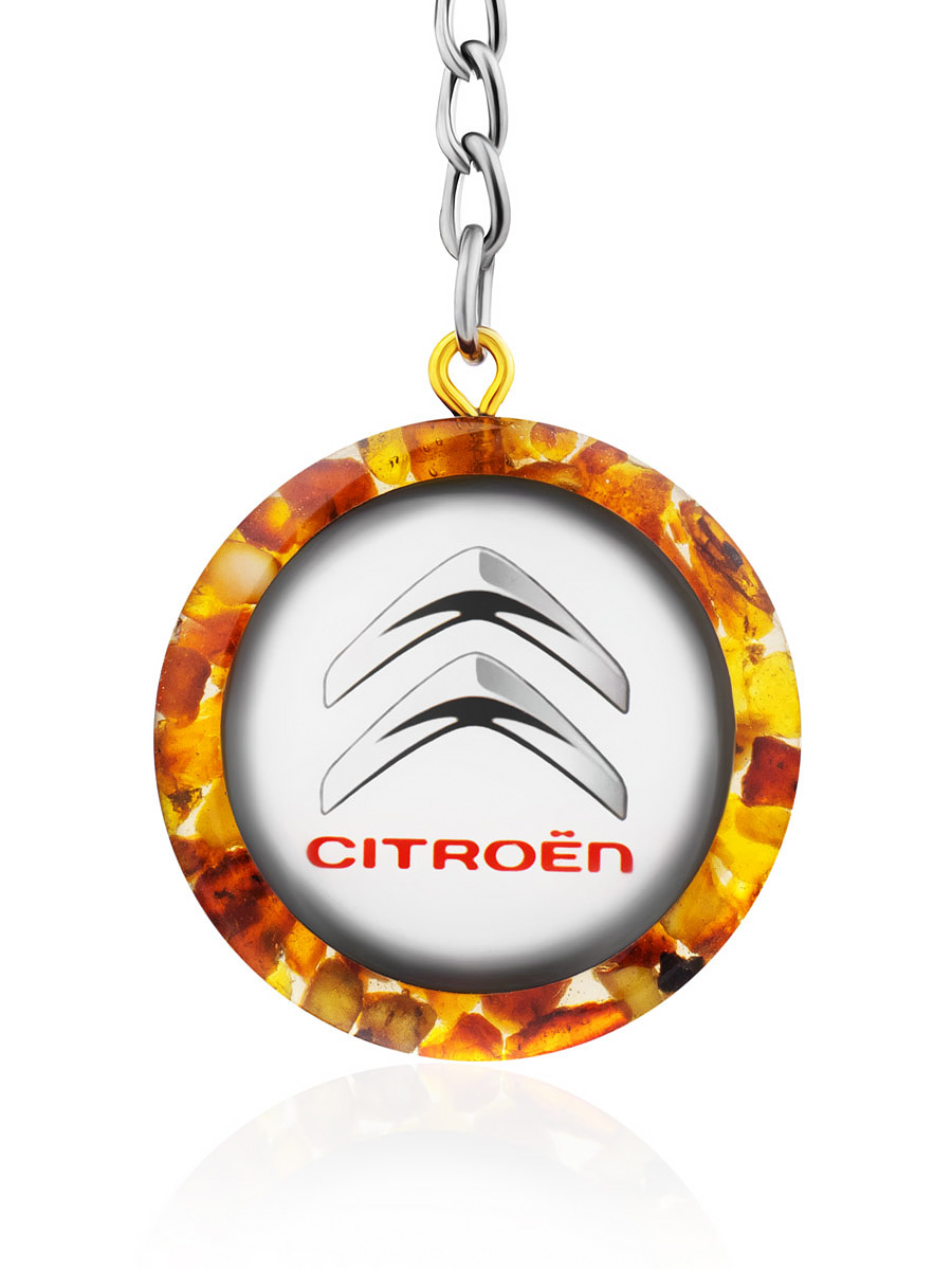 Брелок для автомобильных ключей с мозаикой из янтаря «Ситроен»