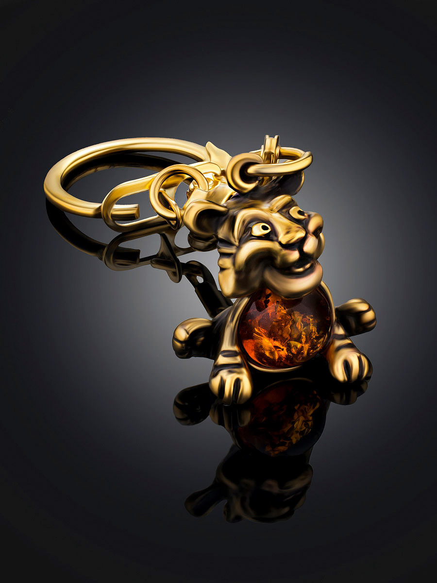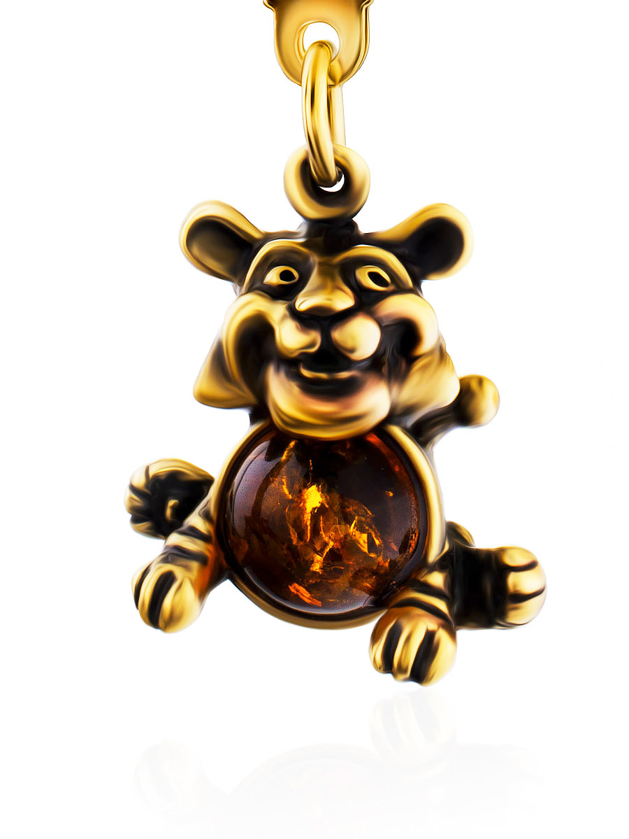 Брелок для ключей, украшенный натуральным янтарём «Весёлый тигр»