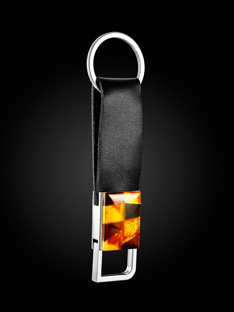 Брелок-карабин, украшенный янтарной мозаикой