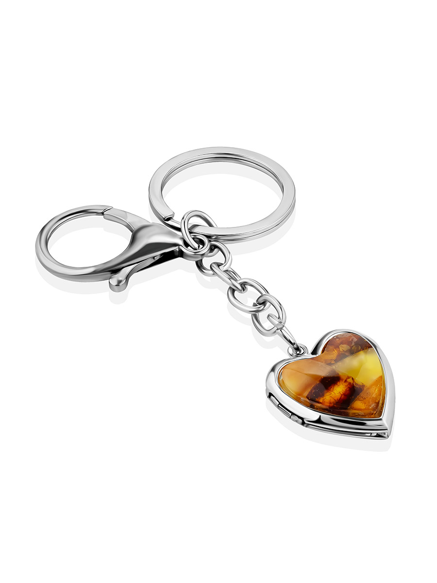 Брелок-медальон с мозаикой из натурального янтаря «Сердечко»