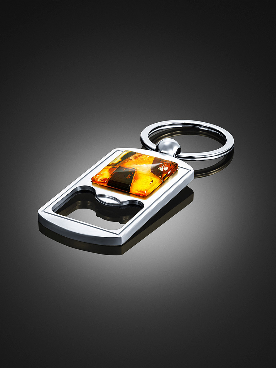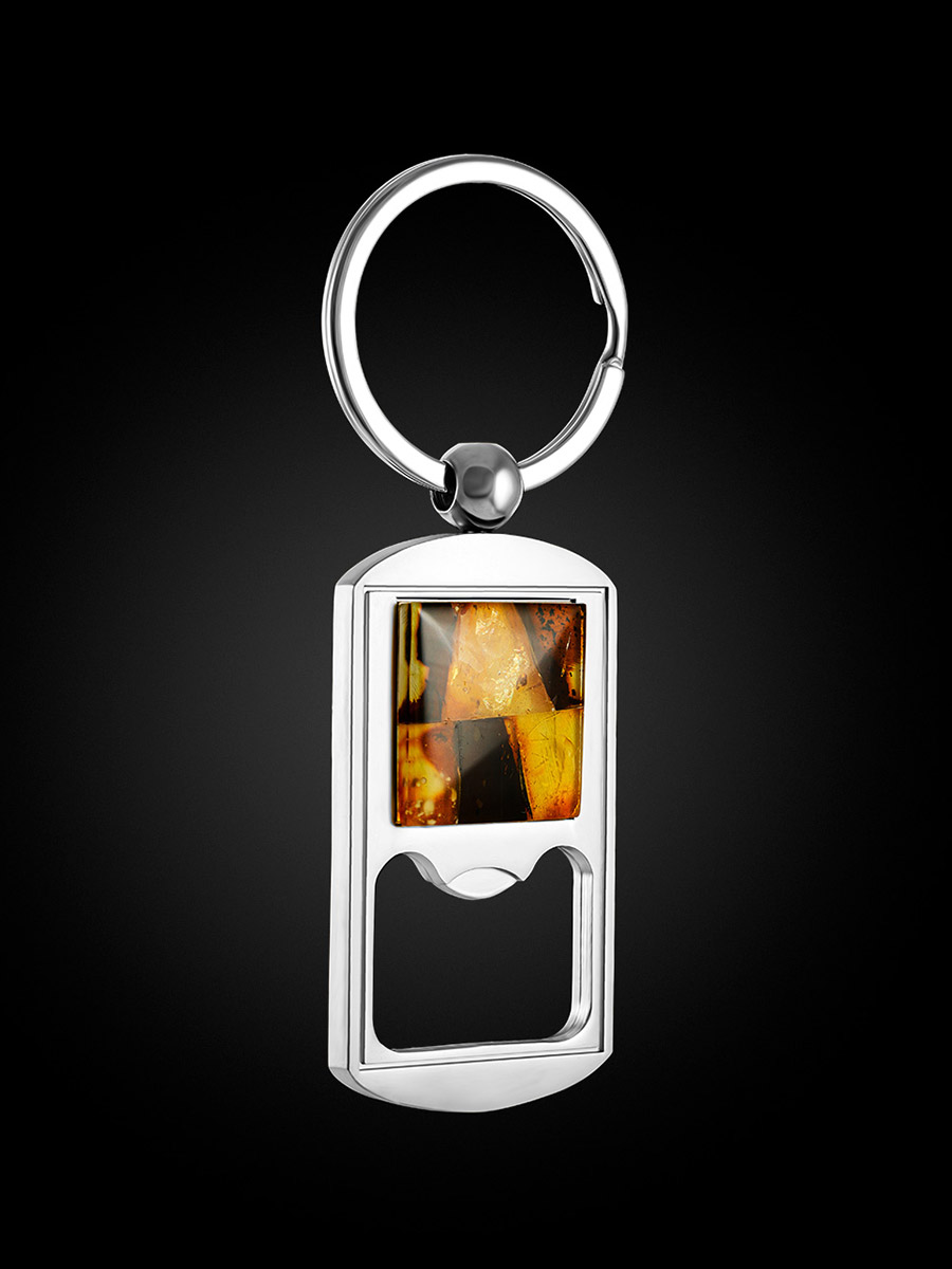 Брелок-открывалка, украшенный янтарной мозаикой