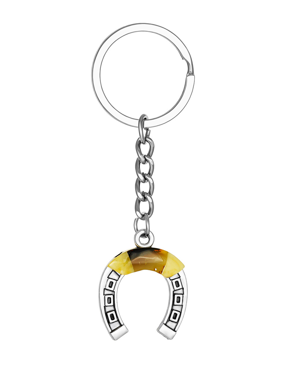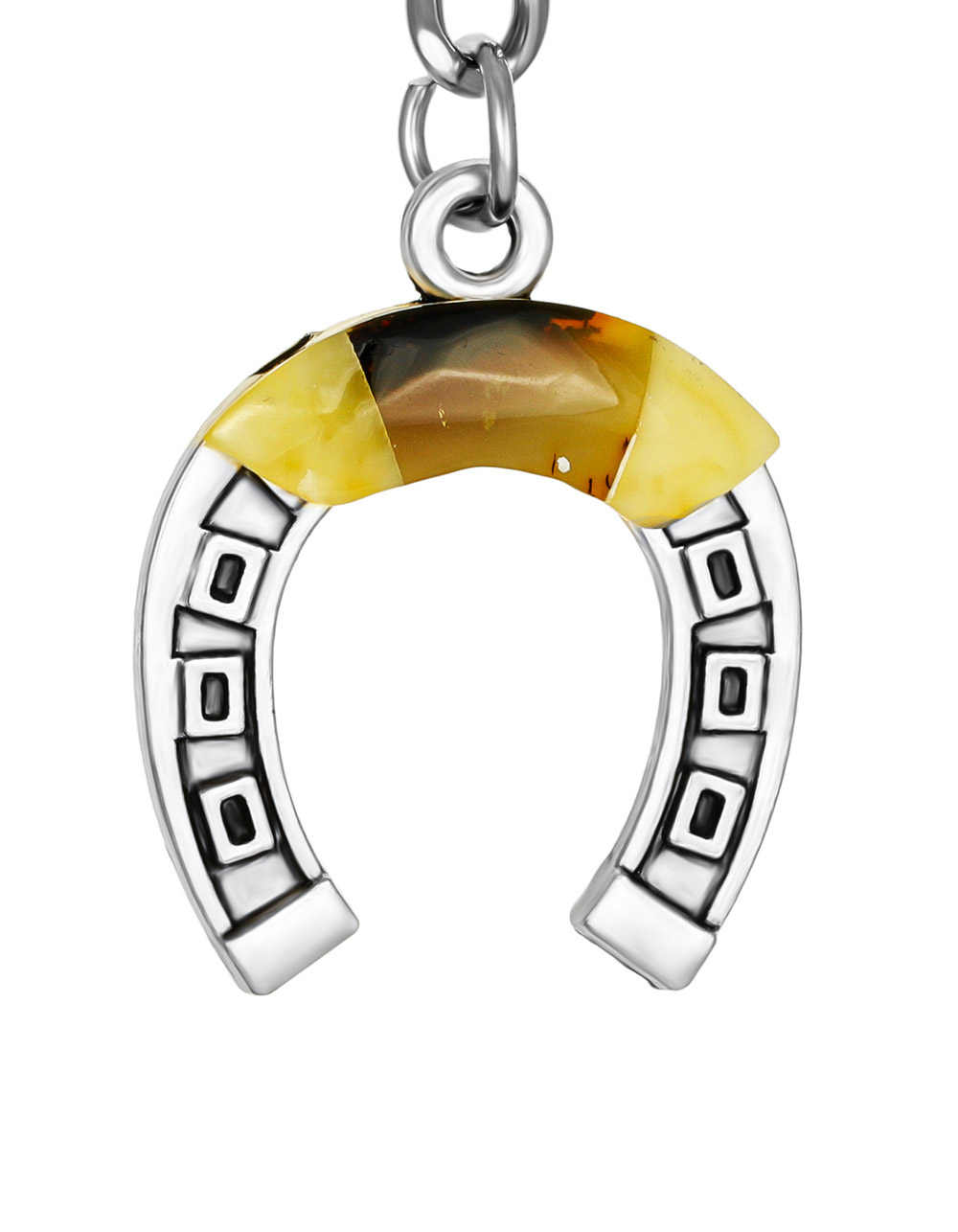 Брелок-подковка, украшенный натуральным янтарем