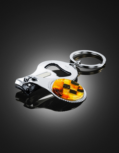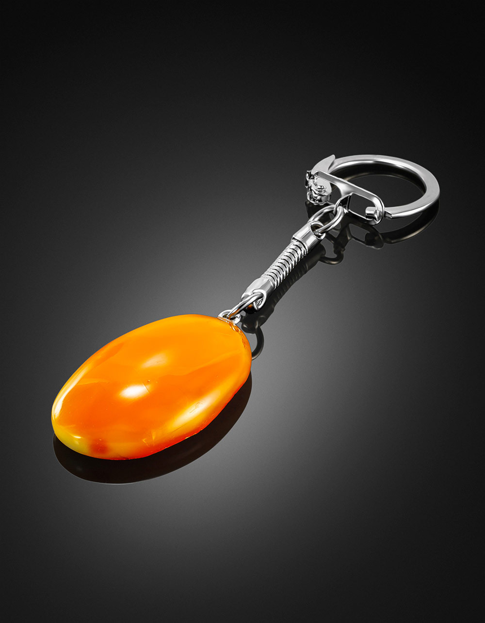 Брелок с натуральным балтийским янтарём красивого оранжевого цвета