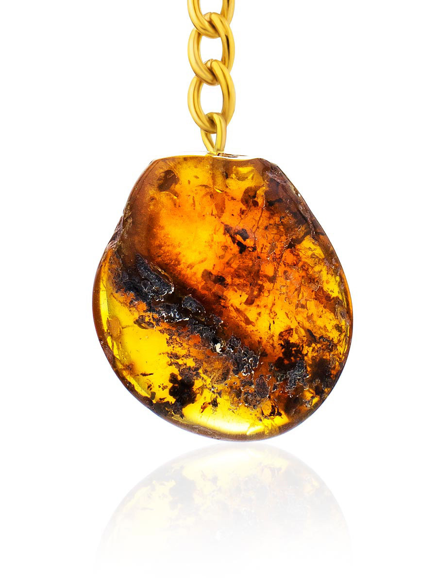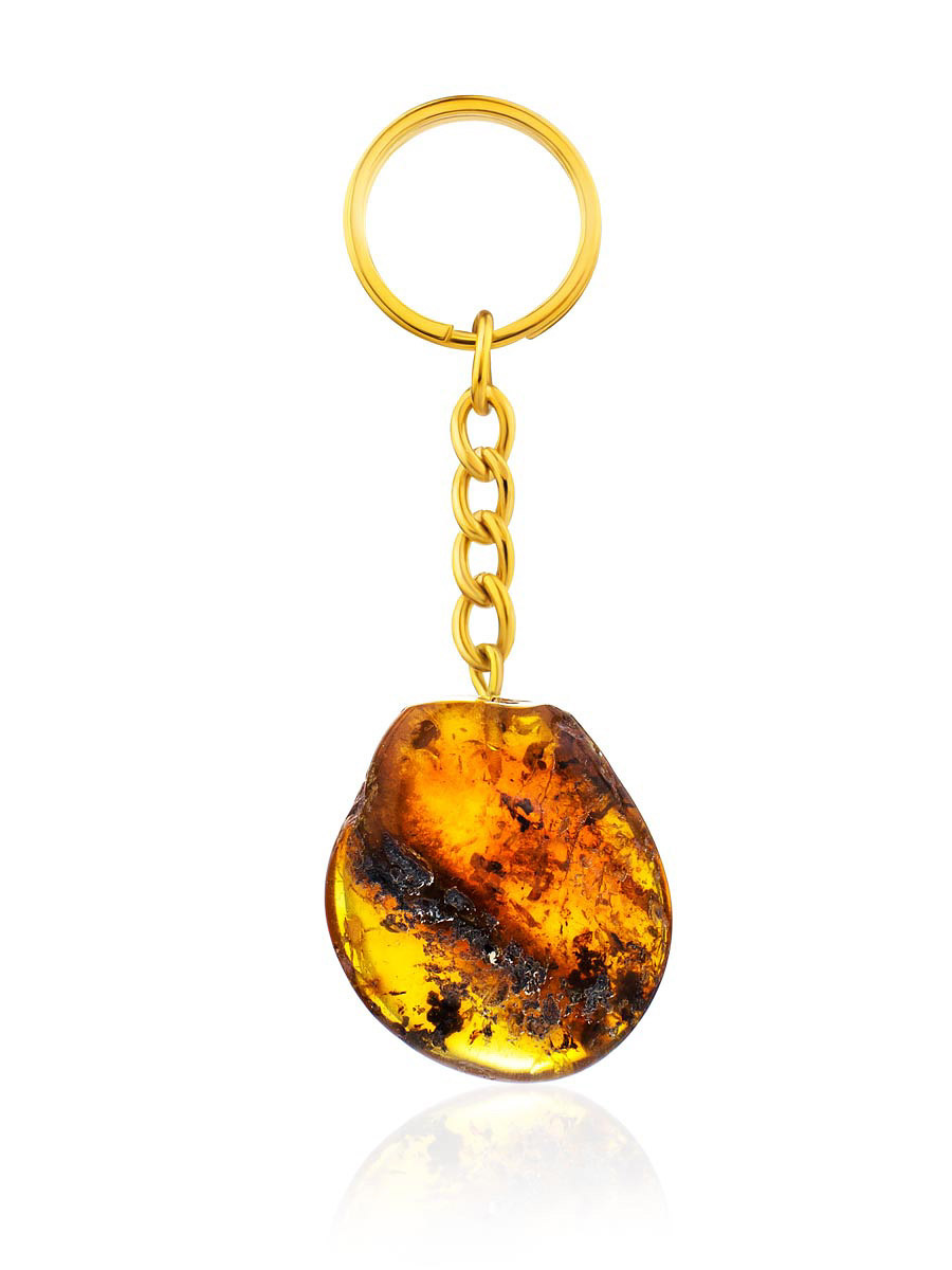 Брелок с натуральным янтарём коньячного цвета
