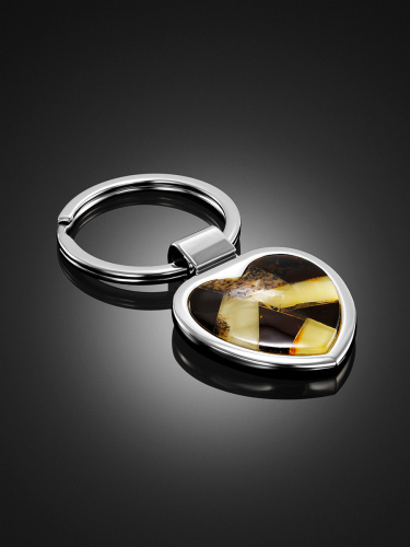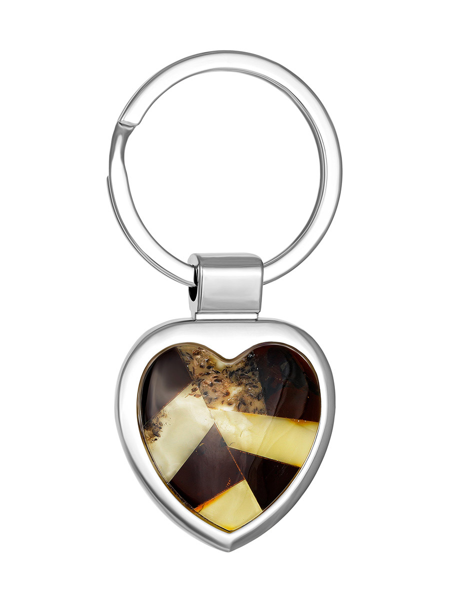 Брелок-сердце, украшенный живописной янтарной мозаикой