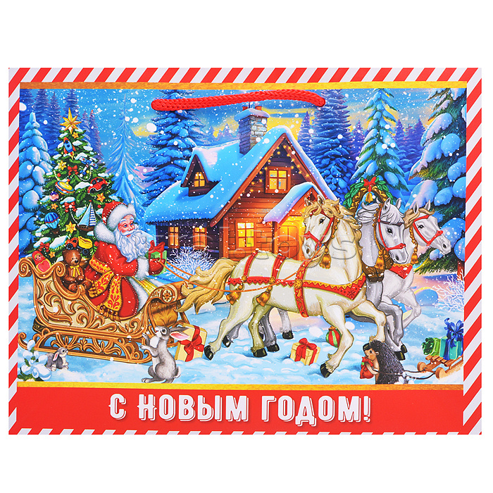 Бумажный пакет для сувенирной продукции с ламинацией, с шириной основания 23 cм