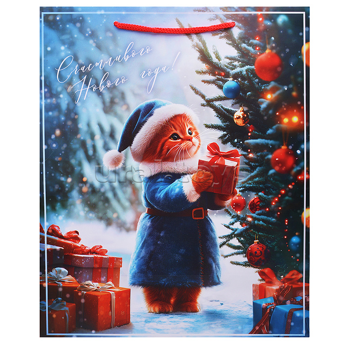 Бумажный пакет для сувенирной продукции с ламинацией, с шириной основания 26 cм.