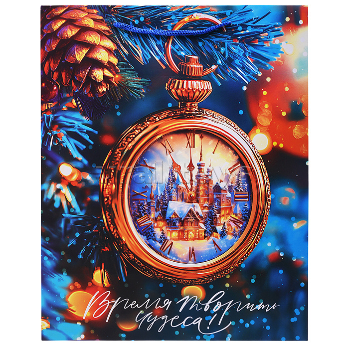 Бумажный пакет для сувенирной продукции с ламинацией, с шириной основания 26 cм.