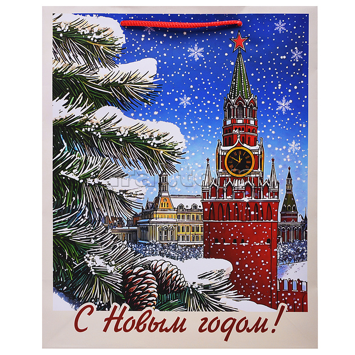Бумажный пакет для сувенирной продукции с ламинацией, с шириной основания 26 cм.