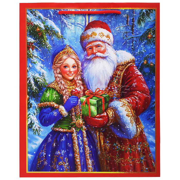 Бумажный пакет для сувенирной продукции с ламинацией, с шириной основания 26 cм.