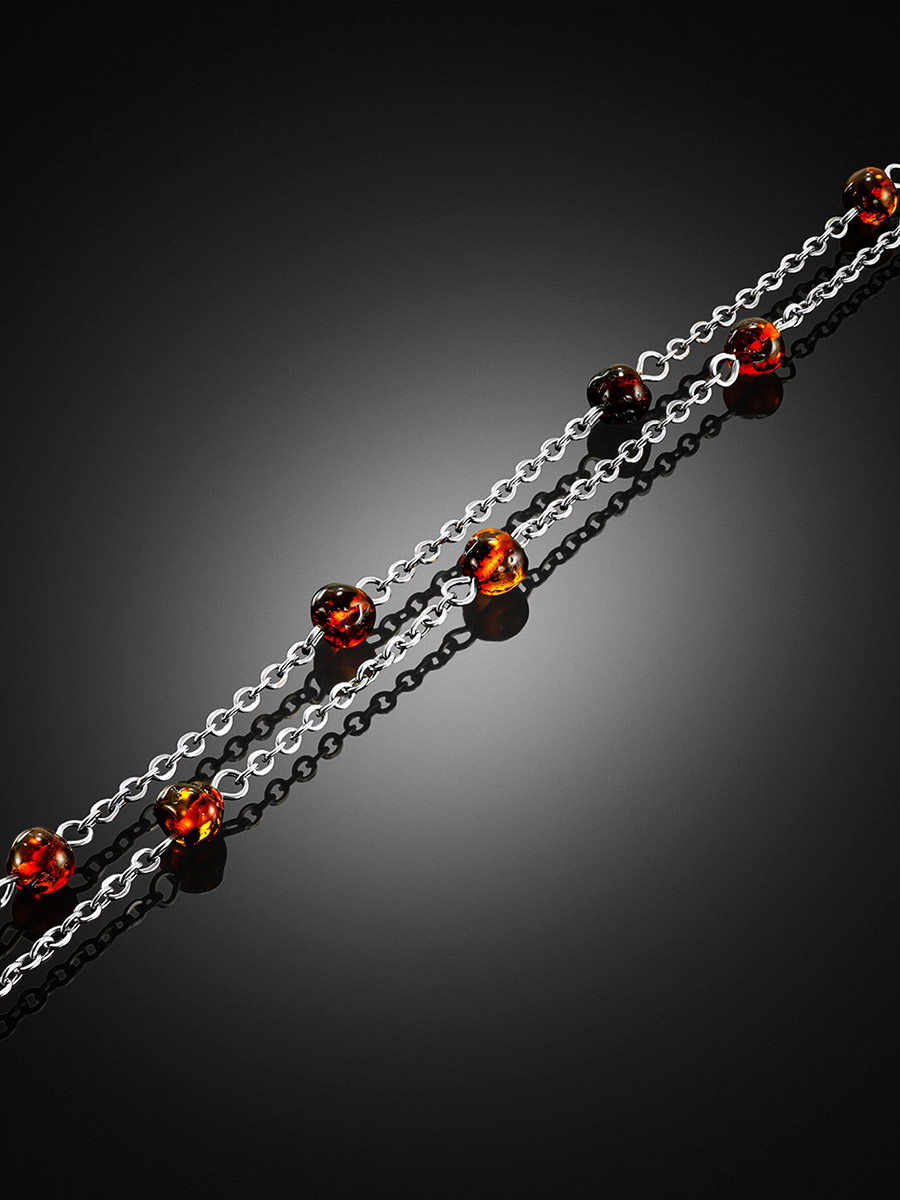 Цепочка для очков с натуральным янтарём коньячного цвета