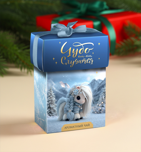 ★︎ Чай в подарочной упаковке "Денежного Нового года (лошадка)", чёрный с чабрецом, 50 г. (с бантиком)