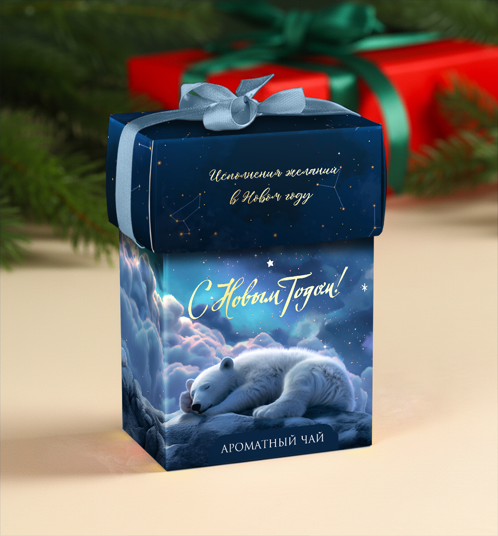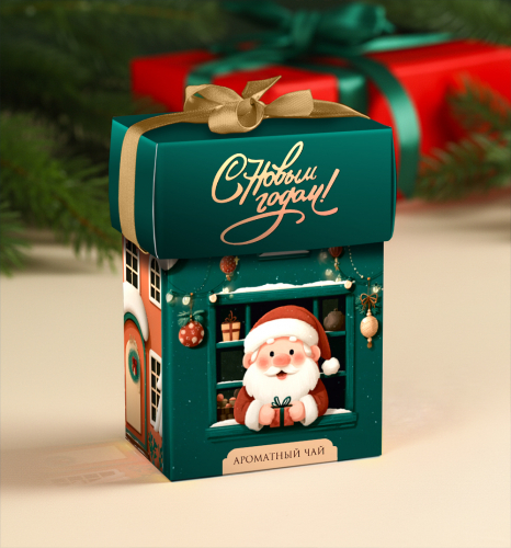 Чай в подарочной упаковке "С Новым годом (мишка)", чёрный с чабрецом, 50 г. (с бантиком)