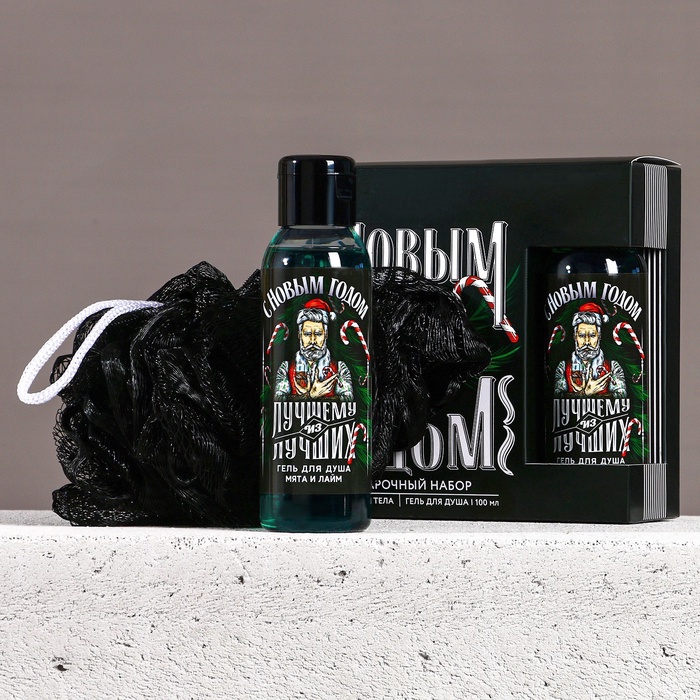 Новогодний подарочный набор косметики «Лучшему из лучших», гель для душа 100 мл и мочалка для тела, Чистое счастье