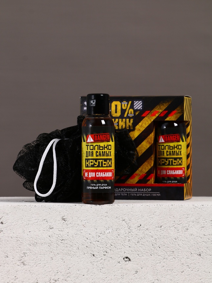 Подарочный набор «100% мужик», гель для душа и мочалка для тела, 100 мл, Чистое счастье
