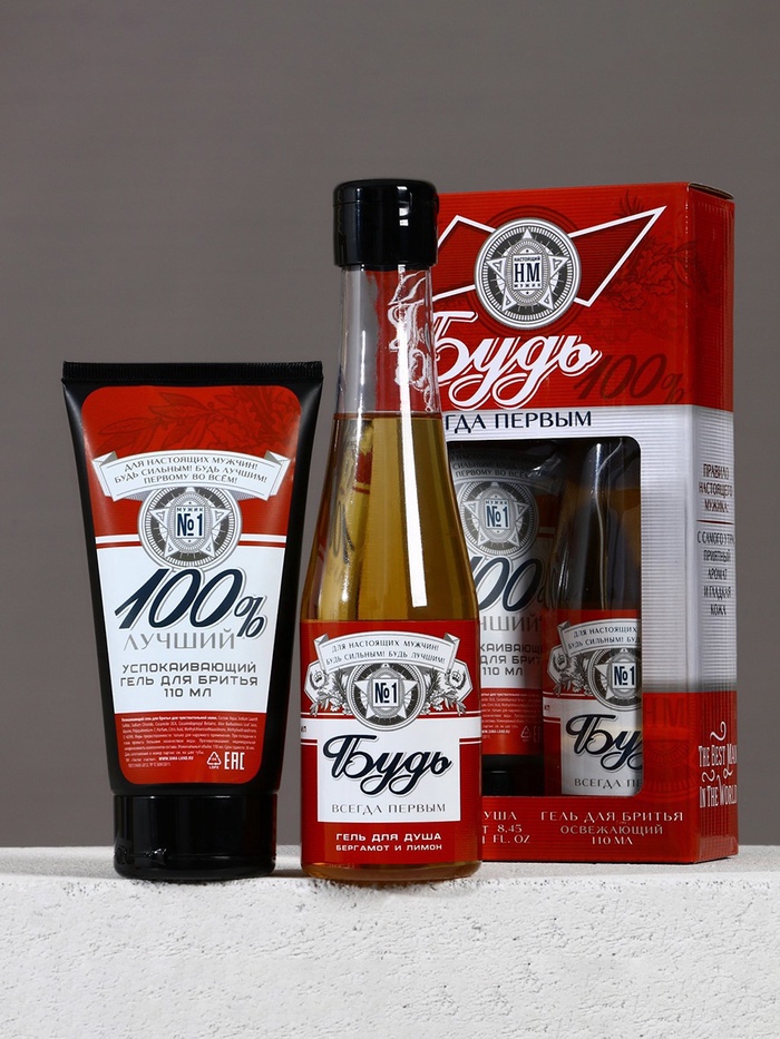 Подарочный набор «Будь!», гель для душа пиво 250 мл и гель для бритья 110 мл, Чистое счастье