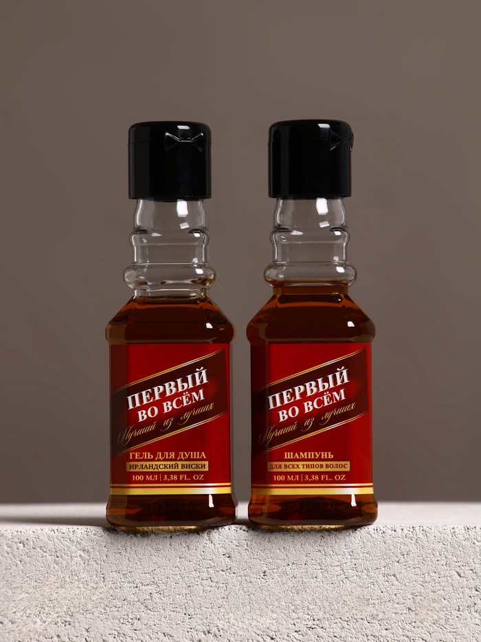 Подарочный набор косметики «Первый во всём», гель для душа и шампунь для волос во флаконах виски, 2×100 мл, Чистое счастье