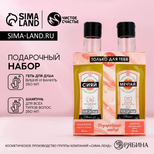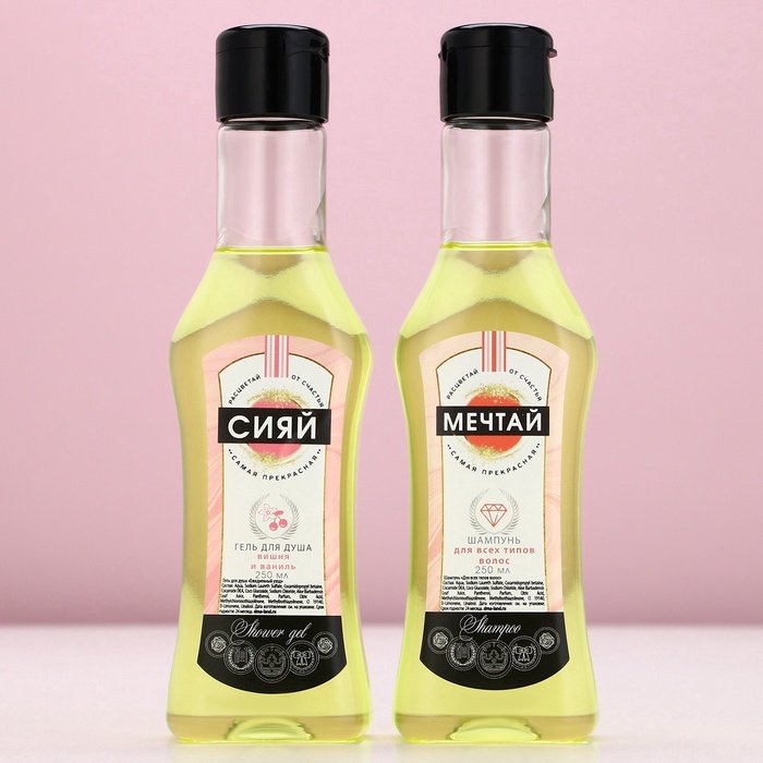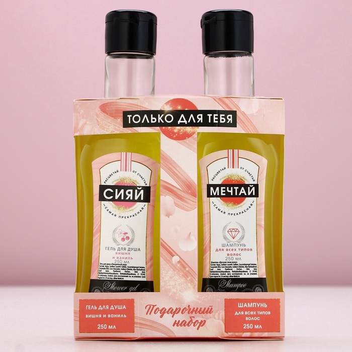 Подарочный набор косметики «Только для тебя»: гель для душа и шампунь для волос мартини, 2×250 мл, Чистое счастье