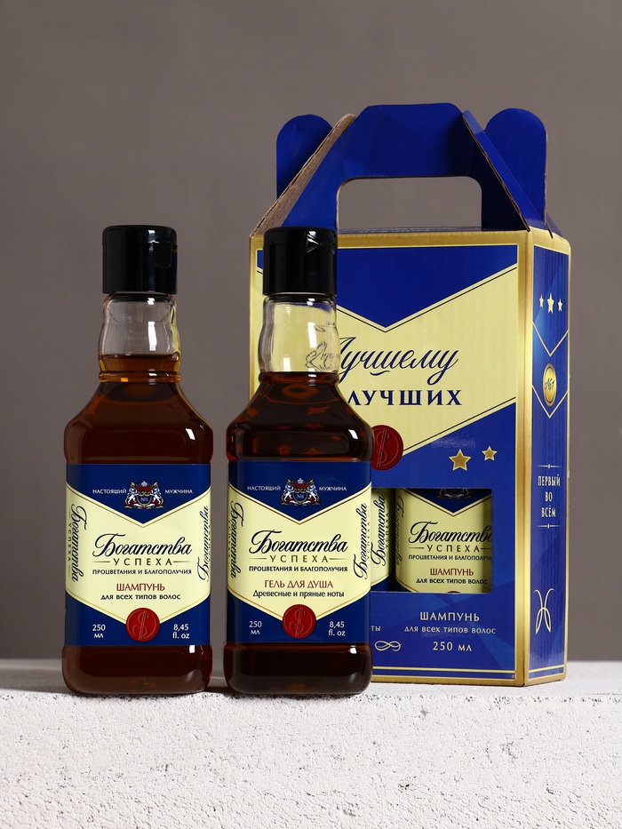 Подарочный набор «Лучшему», гель для душа и шампунь для волос виски, 2×250 мл, Чистое счастье