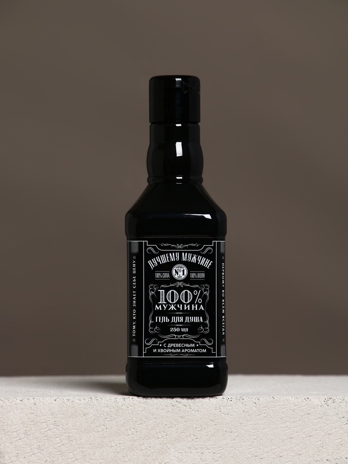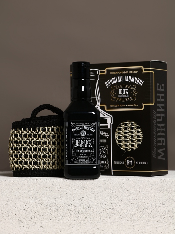 Подарочный набор «Лучшему мужчине», гель для душа во флаконе виски, чёрный и мочалка лента, Чистое счастье