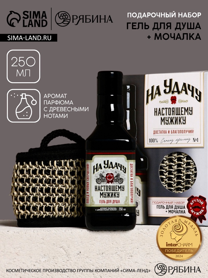 Подарочный набор «На удачу», гель для душа во флаконе виски, чёрный и мочалка лента, Чистое счастье
