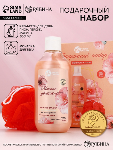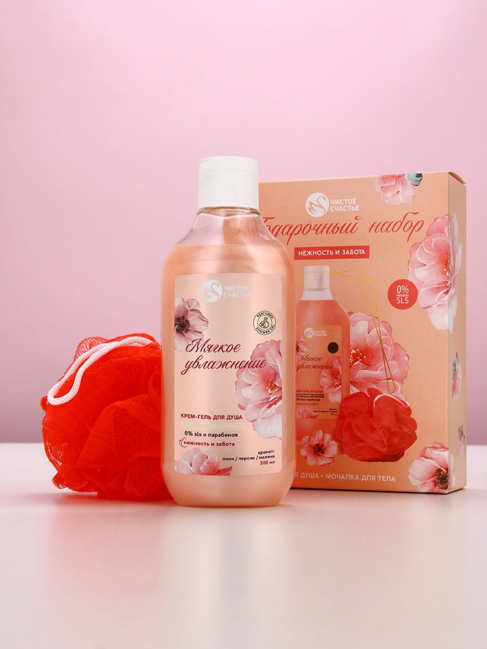 Подарочный набор «Нежность и забота», гель для душа 300 мл и мочалка для тела, Чистое счастье