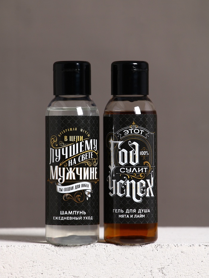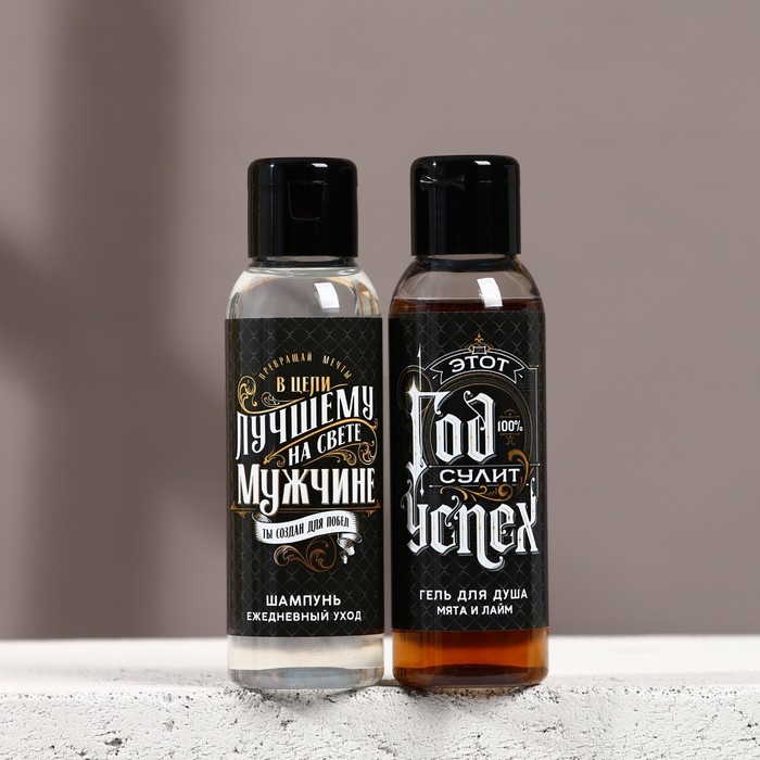 Подарочный набор новогодний мужской «Год сулит успех»: гель для душа и шампунь для волос, 2×100 мл, Чистое счастье