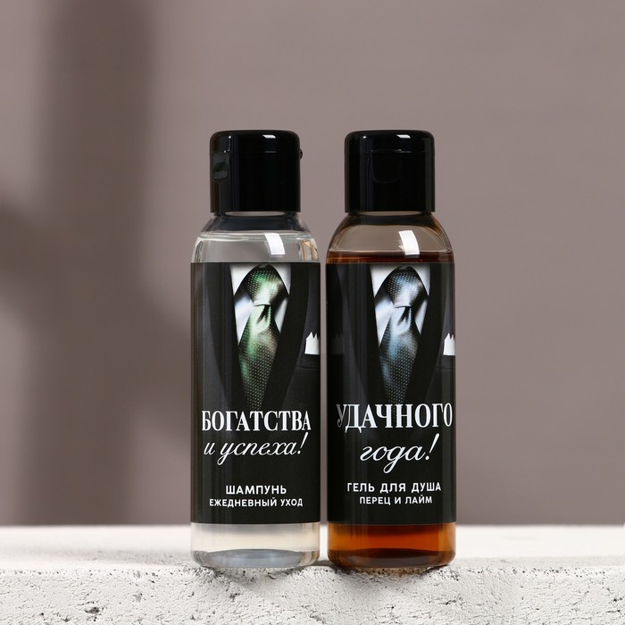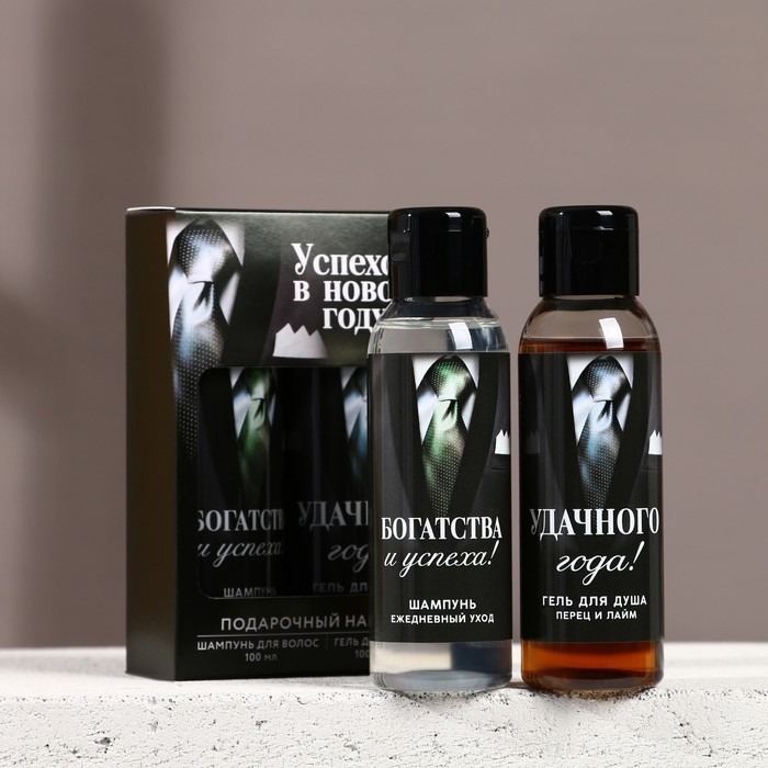 Подарочный набор новогодний мужской «Успехов в году»: гель для душа и шампунь для волос, 2×100 мл, Чистое счастье