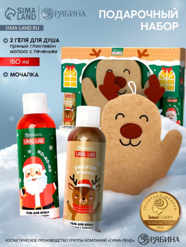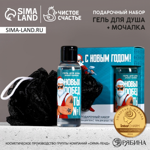 Подарочный набор новогодний «Новых побед»: гель для душа 100 мл и мочалка для тела, Чистое счастье