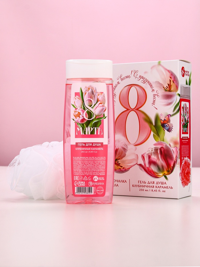 Подарочный набор «С 8 Марта!», гель для душа 200 мл и мочалка для тела, Чистое счастье