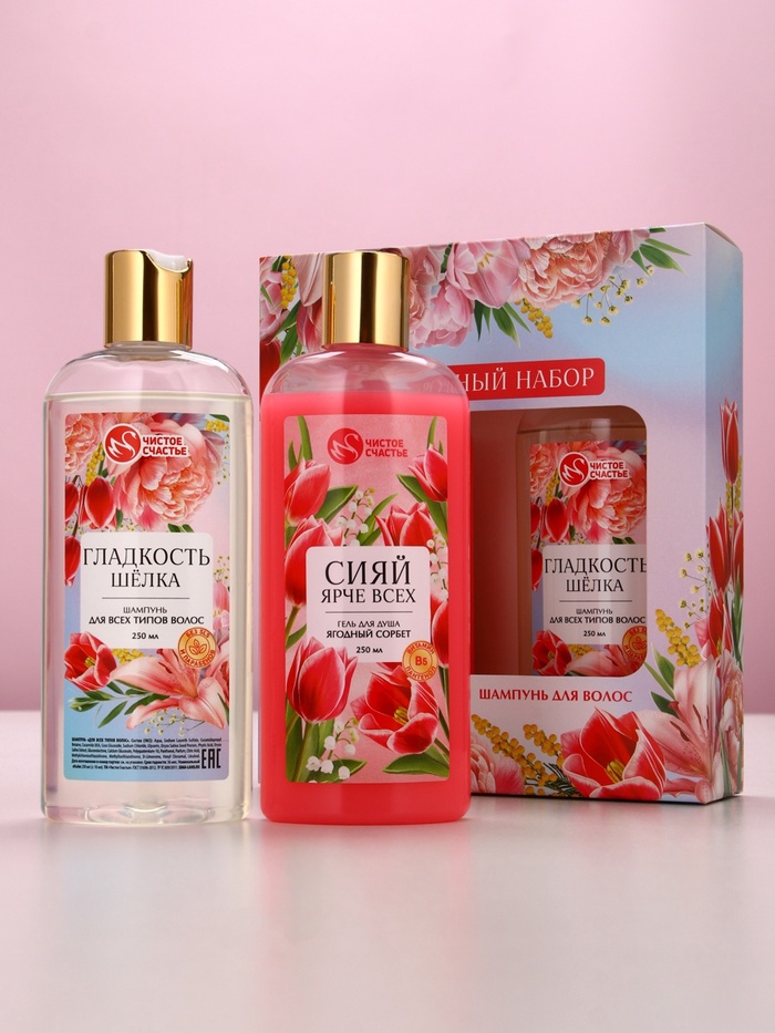 Подарочный набор «Самой лучшей», гель для душа и шампунь для волос, 2×250, Чистое счастье
