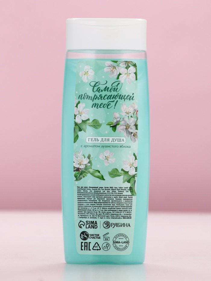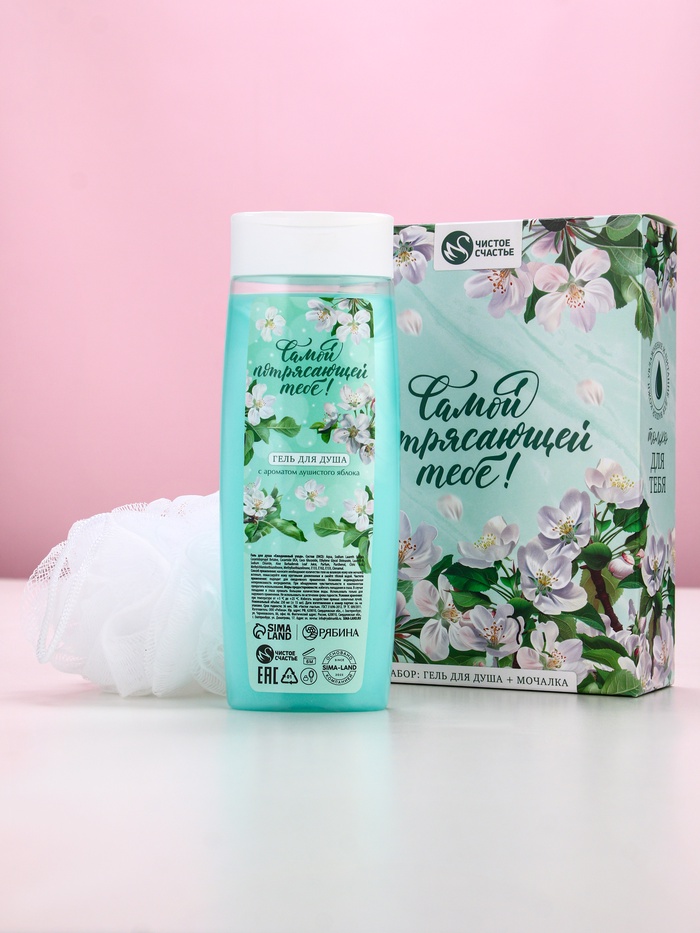 Подарочный набор «Самой потрясающей тебе», гель для душа 250 мл и мочалка для тела, аромат яблока, Чистое счастье