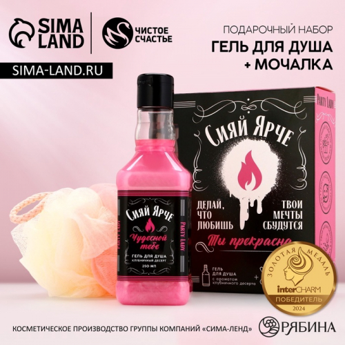 Подарочный набор «Сияй ярче!», гель для душа виски 250 мл и мочалка для тела, Чистое счастье